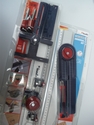 Made of anodised Aluminium, the Linemaster precison rule with its guide grooves is the heart of the Linemaster system, and offers a multitude of uses for the signmaker. Use it as a straight edge, with a blade guide for straight cuts, add the machine and router guides and you can make sign trays and shaped boards. Start your set with a precision rule and build from there.
