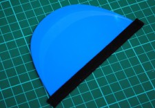 A robust squeegee made of 8mm plywood, one edge laminated with 3mm thick felt.