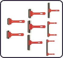 A 6" squeegee with soft stiffness, has a pointed end for corner work. Also available in medium red and hard black.