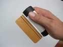 A hard felt squeegee for scratch free applications. 100mm x 70mm x 13mm.