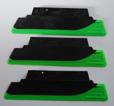 The Speed Wing installation tool is designed with “wings” to enable the installer to reach tight areas typically out of the reach of most bump, bondo, teflon and hard cards. The Speed Wing has one flat edge and one curved edge. The curved edge is designed with proprietary Control Contour Technology (CCT) which enables the tool to encourage a finger or bubble to disperse outward which reduces the chances of a crease. A harder green Speed Wing