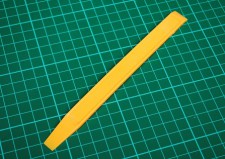 The Speed Wing installation tool is designed with “wings” to enable the installer to reach tight areas typically out of the reach of most bump, bondo, teflon and hard cards. The Speed Wing has one flat edge and one curved edge. The curved edge is designed with proprietary Control Contour Technology (CCT) which enables the tool to encourage a finger or bubble to disperse outward which reduces the chances of a crease. A medium yellow Speed Wing